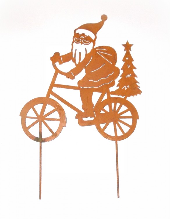Gartenstecker 'Niko auf Fahrrad' aus Metall mit Rostfinish 22 cm